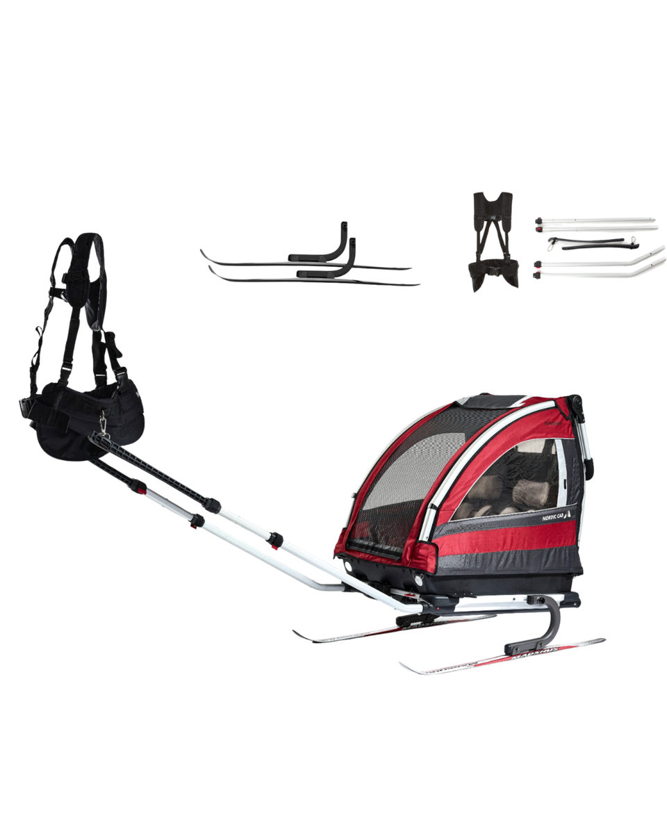Juoksupaketin avulla saat muutettua kärryn juoksuun sopivaksi, hiihtopaketilla taas hiihtämiseen sopivaksi.