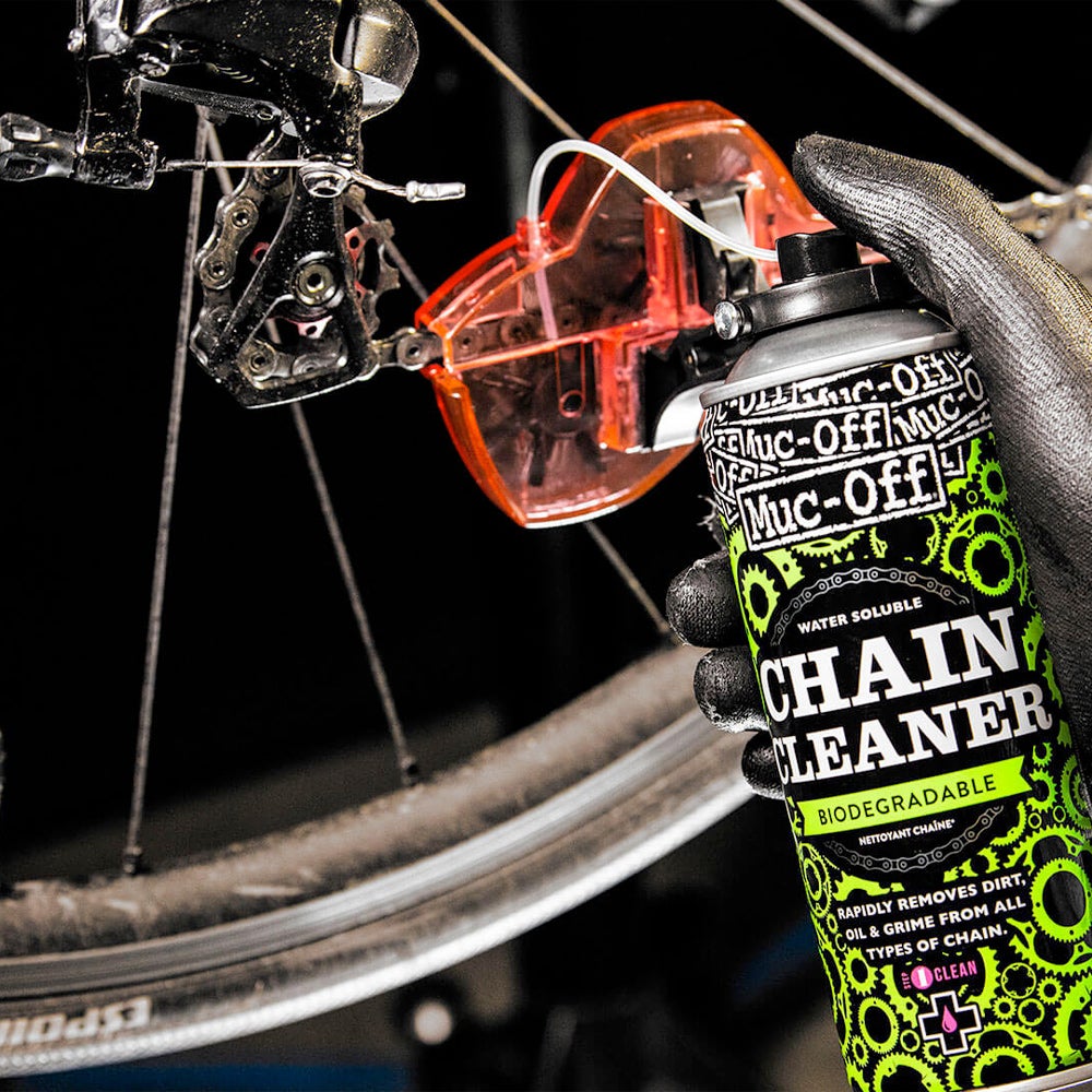 Kätevä Muc-Off BIO -ketjunpuhdistusaine ketjupesurilla ja helpolla puhdistusaineen annostelulla. Biohajoava puhdistusaine puhdistaa tehokkaasti öljyn ja epäpuhtaudet ketjusta. Neste tunkeutuu hyvin levyjen väliin ja pääsee vaikuttamaan roiskumatta ympäriinsä.