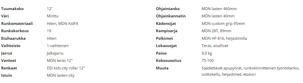 Laadukkaalla lastenpyörällä on ilo oppia pyöräilyn ensimmäiset askeleet! Käyttäjäkokosuositus: 80 – 100cm