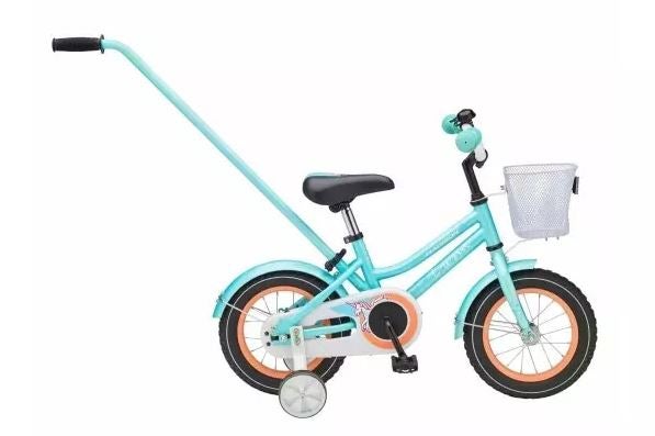 Pikalukitteinen työntötanko helpottaa ajoharjoittelun aloittamista ja etukorissa matkaavat lapsen lelut sekä muut tärkeät pikkuasiat.